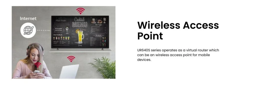 Using LG’s Promota* application, downloadable on a mobile device, you can easily create your own display contents. With Promota, LG Commercial TV-lg-55UR640S you can add text and images to create an online profile for your business as well as deliver information such as event news, seasonal menus, promotions, and even more to your customers while recommending easy-to-use templates relevant to your industry.